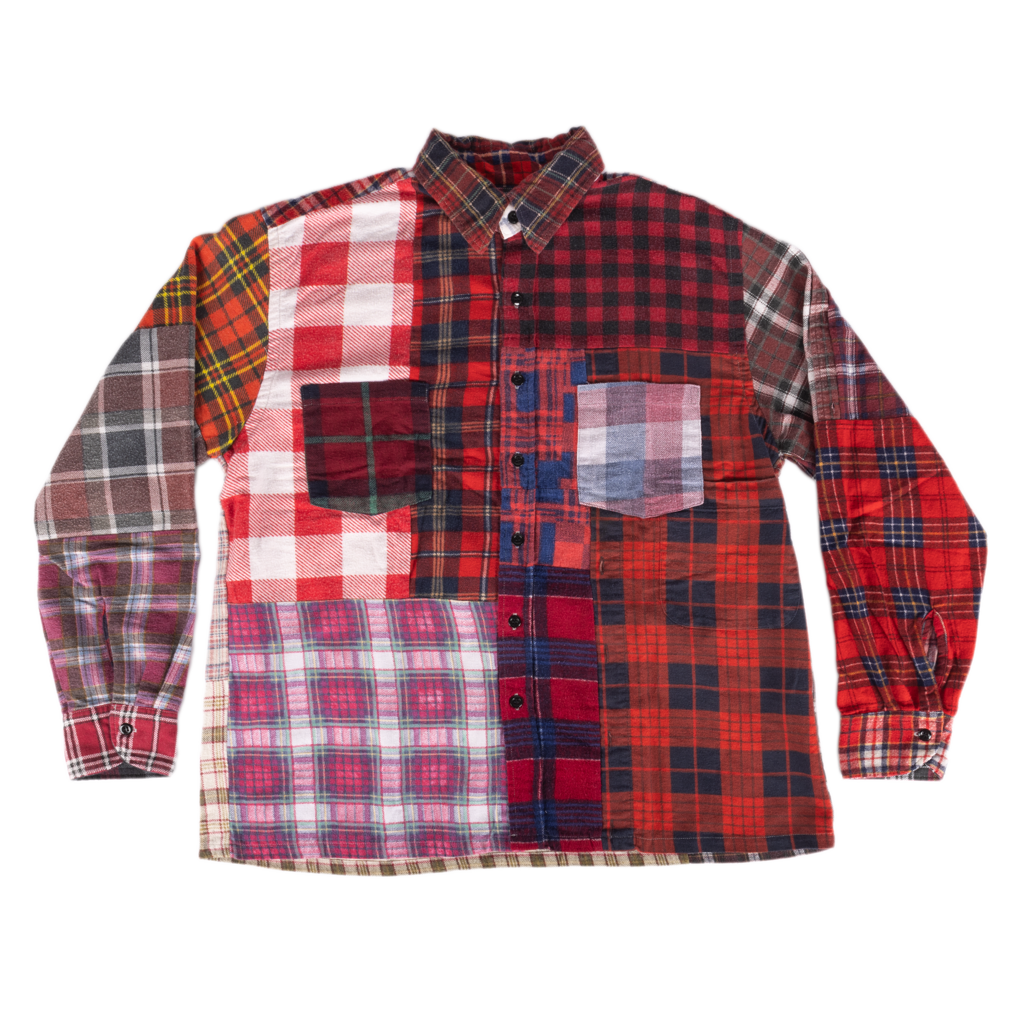 Each Needles Flannel Shirt is a one-of-a-kind piece, crafted from vintage flannel shirts that have been deconstructed and reassembled by hand. The Straight Hem model features a clean, boxy silhouette that accentuates the patchwork patterning, where no two are ever alike.